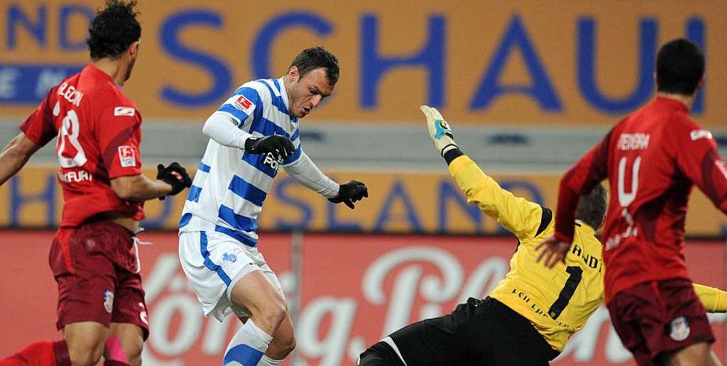 Duisburg (SID) – Mit dem ersten Erfolg nach neun Spielen ohne Sieg hat der FSV Frankfurt beim Debüt von Trainer Benno Möhlmann im Abstiegskampf der 2. Fußball-Bundesliga neue Hoffnung geschöpft. Der FSV gewann beim MSV Duisburg dank eines Doppelpacks von Neuzugang Ilian Micanski (18./68.) mit 2:1 (1:0).