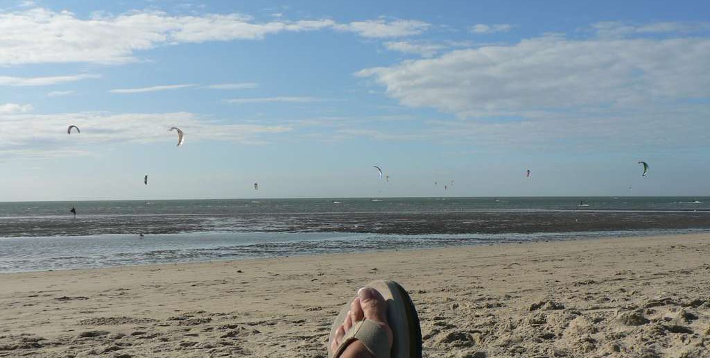 Sonntag, 11. August Gemütlich gefrühstückt und die Gegend erkundet. Leider hat es zuerst geregnet, aber im Laufe des Tages wurde es besser, leicht bewölkt und um die 20 Grad und ziemlich windig. Aber es war ein toller Tag am Strand. Ich wollte eigentlich schwimmen gehen, aber wir waren am Strand, wo alle Kitesurfer unterwegs sind und es war sehr voll. Das war mir dann doch zu gefährlich! Abends gemütlich im Ferienhaus den Tag ausklingen lass….