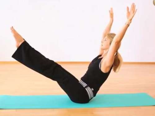 Die Übung Teaser aus dem klassichen Pilates Mattenprogramm im Video gezeigt von Trainerin Michaela Bimbi-Dresp. © trainingsworld.com